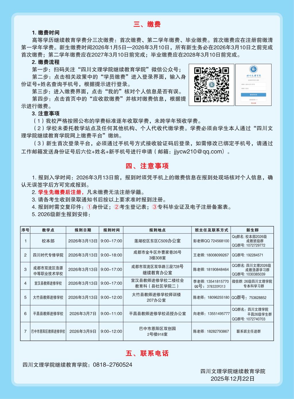 2026级高等学历继续教育成教新生报到须知