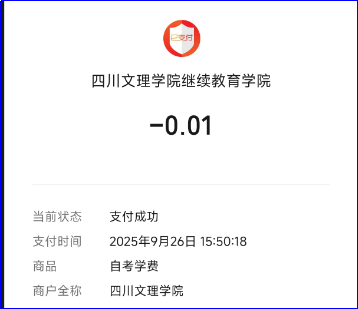 方式一:直接跳转缴费页面。创建缴费订单完成缴费,为保障资金安全,付款时,请注意收款方为四川文理学院继续教育学院,如发现账户信息不符,请立即停止付款。